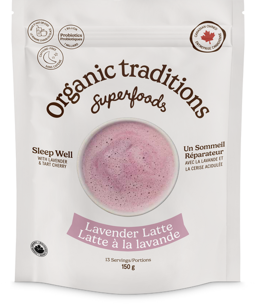 Product Description Organic Traditions Lavender Latte 150 g (13 Servings) is a plant-based superfood latte blend made with calming lavender and tar...