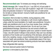Mix 1 scoop (8.5 g) in 1 cup (250 mL) of pure water or juice. Shake well. If you are a new user of greens+, begin with 1/3 of a scoop daily and gradually increase to 1 full scoop daily over a 3 week period. Do not take on empty stomach. Consult a health Wellness-Wellness-Car-e practitioner for use beyond 3 months