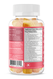 Non-medicinal ingredients: Tapioca syrup, water, natural fruit flavour, agar, pectin, sodium citrate dihydrate, citric acid, stevia leaf extract, vegetable juice (colour), carnauba wax, medium chain triglycerides.