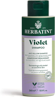 Herbatint Violet Shampoo – Anti-Yellow is a vegan, colour-correcting cleanser formulated specifically for white, grey, bleached and lightened hair. With approximately 93% natural-origin ingredients, this formula uses violet pigments to neutralize unwanted yellow tones and restore bright, luminous hues. Infused with Cassia Alata extract, it combines antioxidant protection, root strengthening and hair-densifying action—all in dermatologically tested, vegan-friendly and eco-conscious packaging.