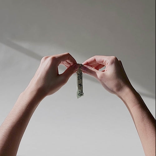 Remove the tampon from its wrapper and un-fold the string.