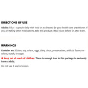 Dosage: Adults: Take 1 capsule daily with food or as directed by your health-care practitioner. If you are taking other medications, take this product a few hours before or after them.