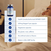 Tru Niagen is authorized by Health Canada (NPN: 80092534) following a rigorous safety and efficacy review. It is manufactured in the USA under GMP standards, with each batch undergoing extensive quality testing. This formula is vegetarian, gluten-free, nut-free, caffeine-free, and contains no artificial colours or flavours.