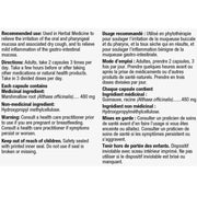 Medicinal ingredient: Marshmallow Root (Althaea officinalis) 480 mg