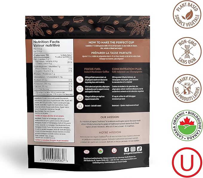 Organic Traditions Instant Focus Fuel (Mushroom Coffee) gives you the natural energy and focus you need without the jitters.