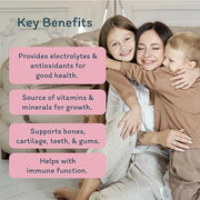 Make hydration simple and effective for children with Organika Kids Electrolytes in the fun Strawberry Kiwi flavour. Each convenient 3.5 g sachet is sugar-free and vegan-friendly, supplying essential minerals like calcium (50 mg) and magnesium (60 mg) plus vitamin C (110 mg) to support electrolyte balance, immune function and healthy growth. The addition of prebiotic vegetable fibre helps promote gut health and good digestion—all part of a thoughtful, school-friendly hydration solution.