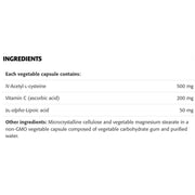 Microcrystalline cellulose and vegetable magnesium stearate in a non-GMO vegetable capsule composed of vegetable carbohydrate gum and purified water