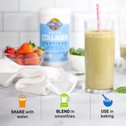 Mix 1–2 scoops of collagen powder into 8–12 oz (250–350 mL) of water, juice, plant-milk, coffee, or smoothies. Stir, shake, or blend until fully dissolved.