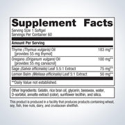 CandiBactin-AR® is a targeted herbal formula featuring concentrated essential oils from red thyme and oregano, blended with aromatic-herb extracts such as sage and lemon balm to promote a healthy intestinal environment and support digestive comfort.