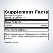 Quercetin 500 offers a high-potency dose of 500 mg quercetin per capsule — a plant-derived flavonoid known for its strong antioxidant profile and support for both immune and cardiovascular wellness.