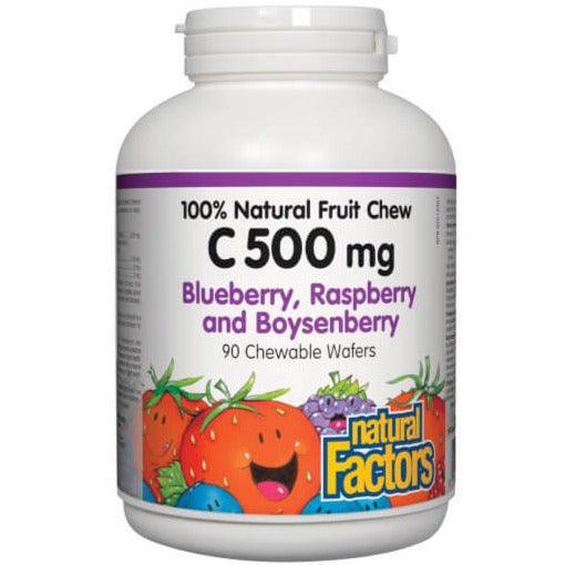 Natural Factors C 500mg Blueberry Raspberry & Boysenberry 90 Chewable Wafers