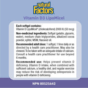 Natural Factors Vitamin D3 LipoMicel 2000 IU 180 softgels