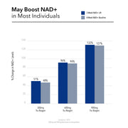 Our foundational daily serving of 300mg, clinically proven to increase and sustain NAD+ levels by over 50% in most individuals with daily use. Support your cellular energy production and cellular repair with Niagen®, our award-winning, superior NAD+ booster. Proven to be more efficient than other NAD+ precursors and NAD+ itself.