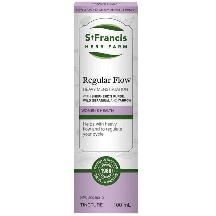 Regular Flow is a tincture formula that helps relieve menorrhagia (i.e. heavy menstruation).